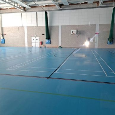ES Moss are pleased to announce the complete renewal of a 1000 square metre multi purpose sports hall floor at St Michael’s Catholic High School in Watford. The works were carried out in the summer holidays and included the removal of the existing flooring, a new undercarriage system, new sports vinyl and court line marking.